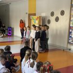9 II wyruszyliśmy w muzyczną podróż po Polsce. Każda z klas przedstawiła piosenkę lub taniec z danego regionu Polski. Prezentowaliśmy też przygotowane przez nas plakaty. Było kolorowo, rytmicznie i radośnie.