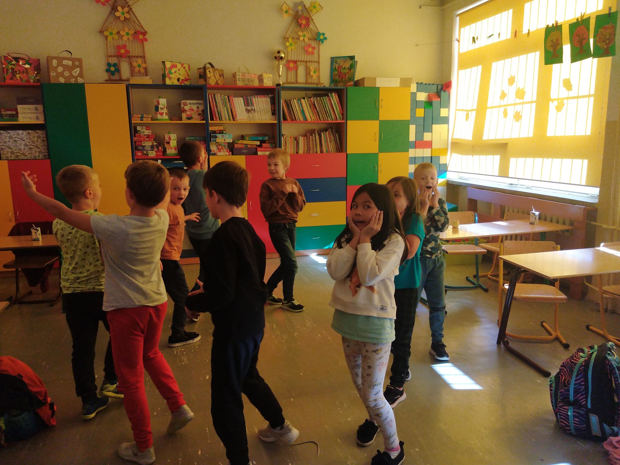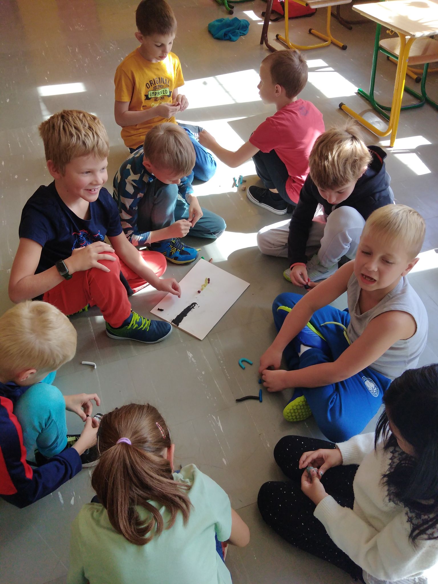 Dzieci z klasy 2a na zajęciach świetlicowych uczyły się rozpoznawać i wyrażać emocje. Świetnie bawiły się w „pociągu emocji” oraz przygotowując buźki wyrażające różne emocje.