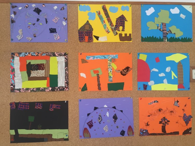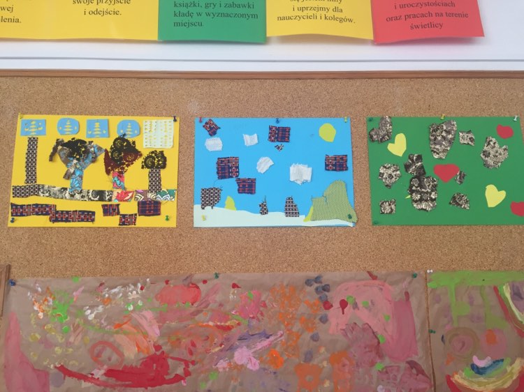 Świetliczaki z 2c wykonały także przepiękne obrazki sensoryczne obrazki. Do swoich prac uczniowie wykorzystali różnorodne tkaniny . Dzięki temu była to świetna zabawa sensoryczna.