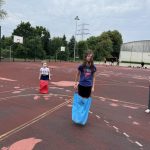 Z okazji Dnia Dziecka uczniowie z klasy 1c uczestniczyli w zabawach ruchowych na boisku szkolnym.
