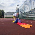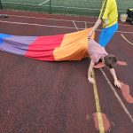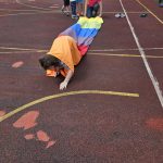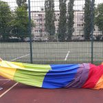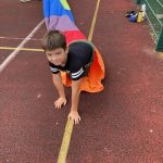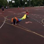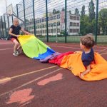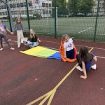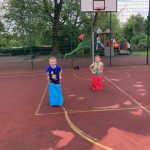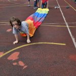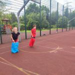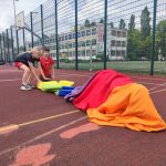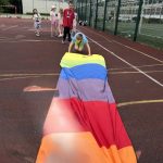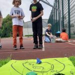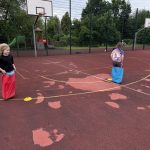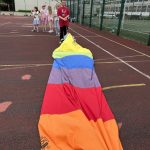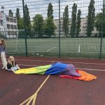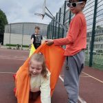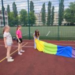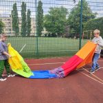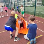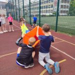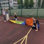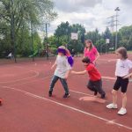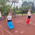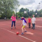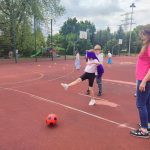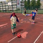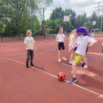Z okazji Dnia Dziecka uczniowie z klasy 1c uczestniczyli w zabawach ruchowych na boisku szkolnym.