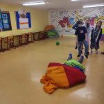 Sportowy Dzień Dziecka w świetlicy – tak bawili się uczniowie 3b. Najpierw uczestniczyli w konkurencjach na boisku szkolnym a w sali gier tańczyli różne układy muzyczne.