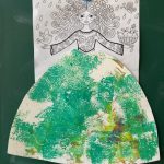 Suknia Pani Wiosny- uczniowie klasy 2C poznali nową technikę graficzną MONOTYPIĘ. Zajecia odbyły się w ramach realizowanej w tej klasie innowacji „Arteterapia jako droga do rozumienia siebie i wyrażania emocji.”