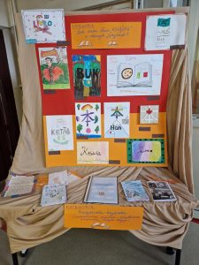 Na zamieszczonych zdjęciach można obejrzeć domowe biblioteczki uczniów, prace plastyczne z napisem książka w dowolnie wybranym obcym języku, ilustracje do książek, własnoręcznie napisane książki, komiksy i tomiki poezji.
