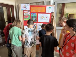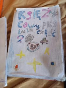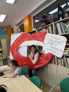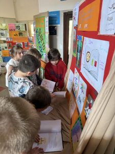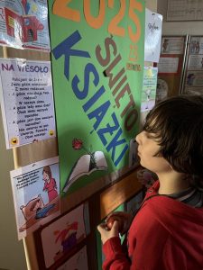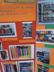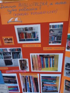 Na zamieszczonych zdjęciach można obejrzeć domowe biblioteczki uczniów, prace plastyczne z napisem książka w dowolnie wybranym obcym języku, ilustracje do książek, własnoręcznie napisane książki, komiksy i tomiki poezji.