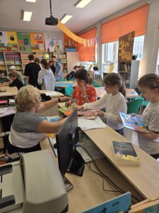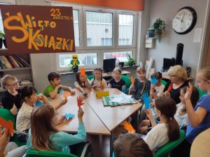 Z okazji Światowego Dnia Książki i Praw Autorskich spotkaliśmy się w szkolnej bibliotece i rozmawialiśmy o swoich ulubionych książkach.