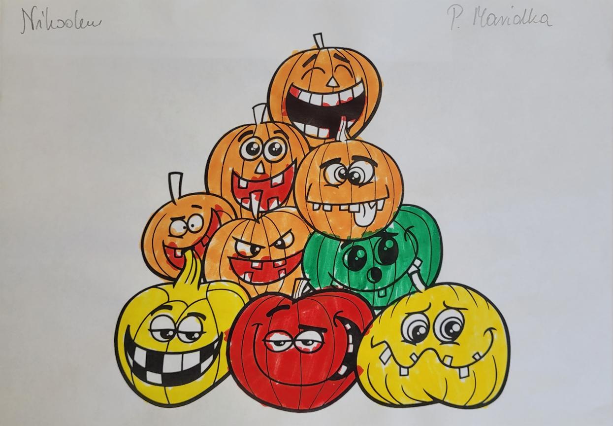 Podczas warsztatów uczniowie oraz Seniorzy wspólnie smażyli naleśniki z dyni, brali udział w konkursach artystycznych, tańczyli oraz robili tematyczne prace plastyczne.