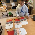 Były też wyklejane Mikołaje. Prace dzieci można podziwiać na korytarzu na parterze.