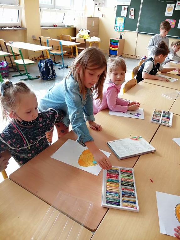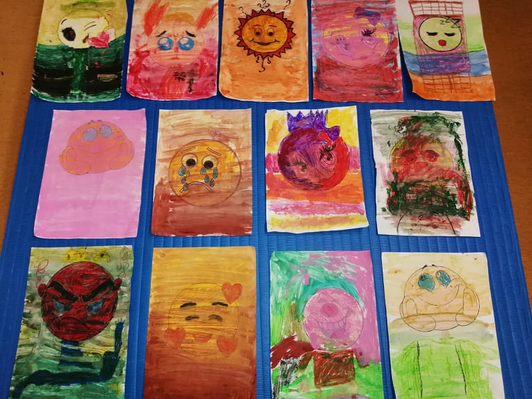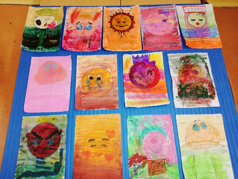 W klasie 1b uczniowie malowali swoje emocje.