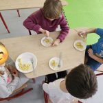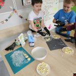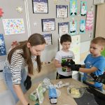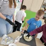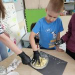 Warsztaty kulinarne w klasie 1c – śląskie smaki. W ramach realizowanego projektu „Na ludowo z Ochotą” dzieci z klasy 1c obejrzały występy II edycji twórczości folkloru polskiego. Tego samego dnia, aby przybliżyć uczniom kuchnię regionu śląskiego, przygotowaliśmy tradycyjne kluski śląskie, poznając sposób ich wykonania oraz charakterystyczny kształt z wgłębieniem pośrodku. Dzieci miały również okazję spróbować śląskich kołaczy.